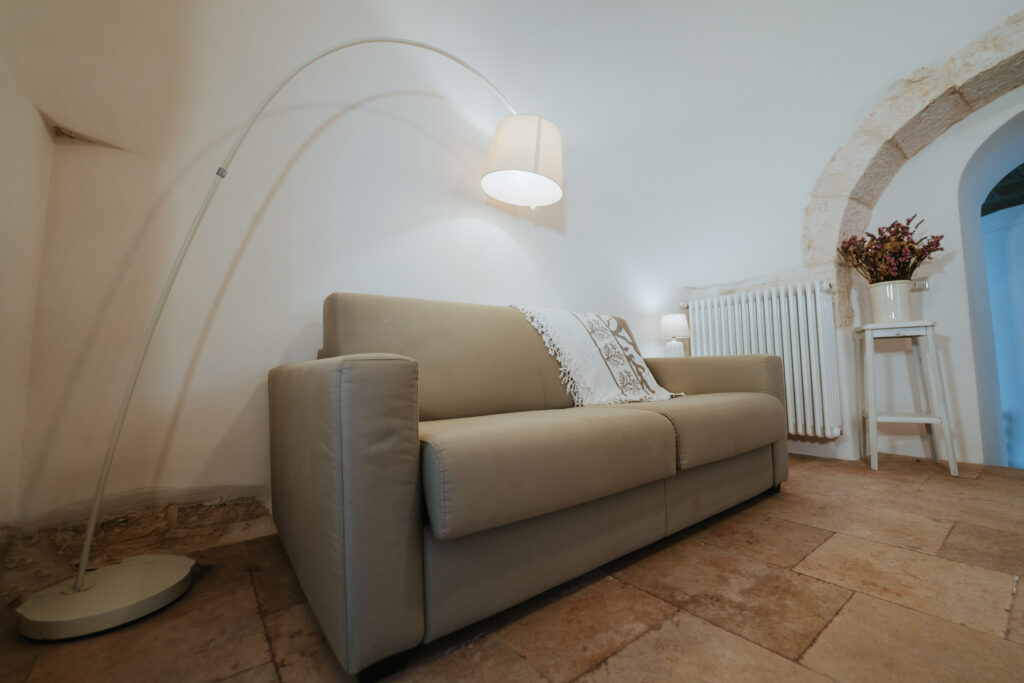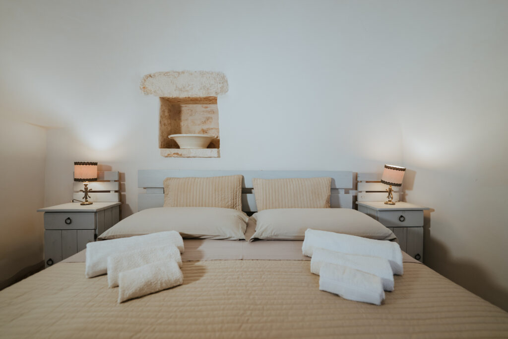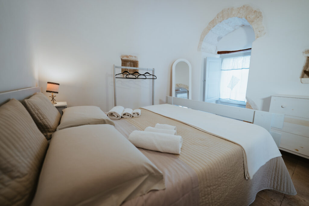 Il trullo di 56mq si compone di una camera da letto matrimoniale, una comoda cucina, un soggiorno con divano letto matrimoniale, un bagno e un atrio esterno attrezzato dal lato opposto rispetto all’entrata, che vi permetterà di godere di maggiore privacy.